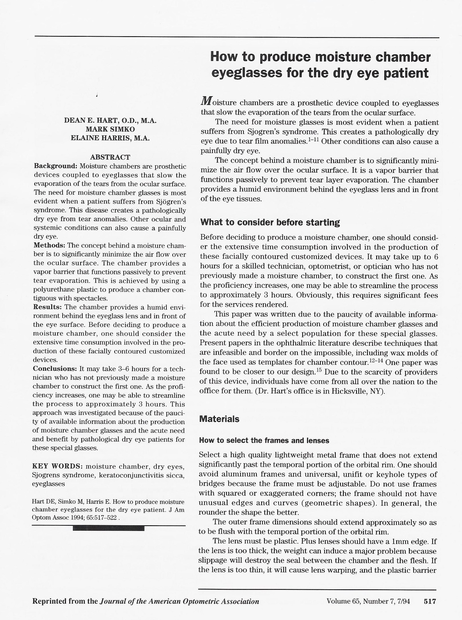 How to produce moisture chamber eyeglasses for the dry eye patient