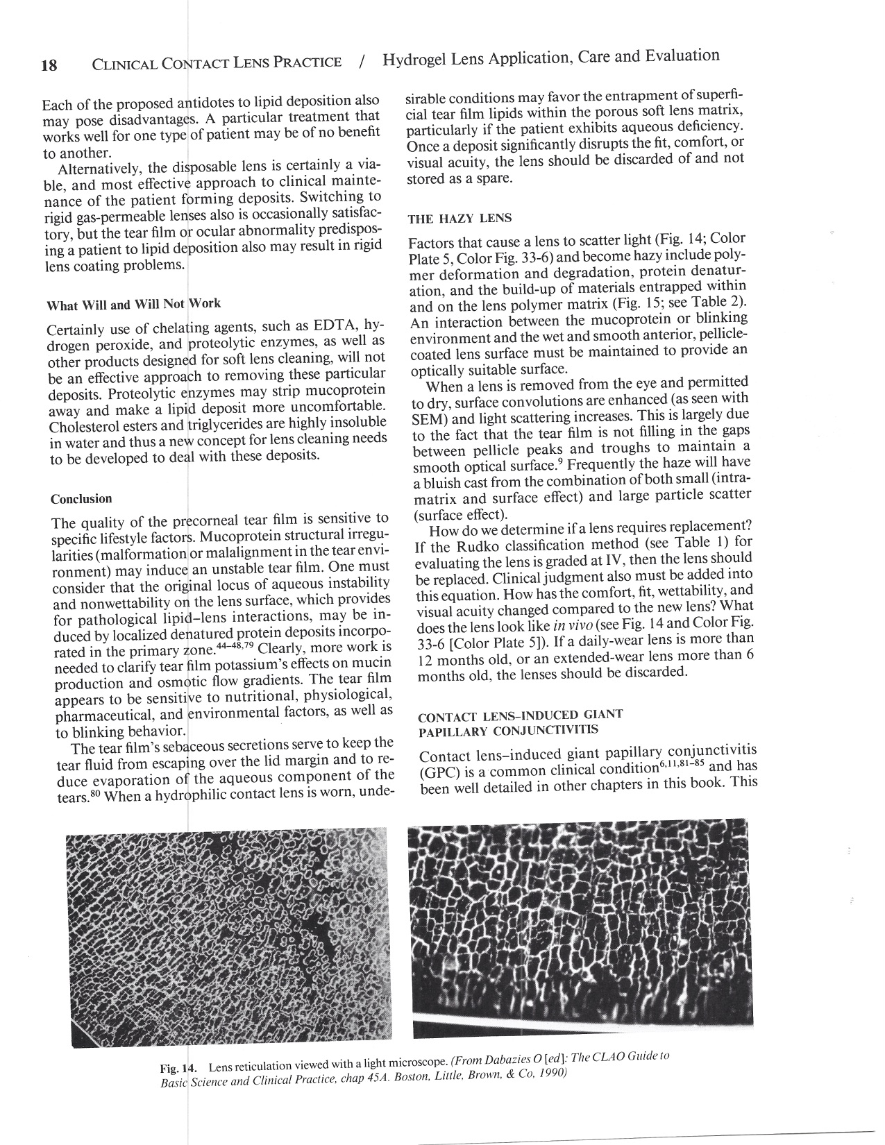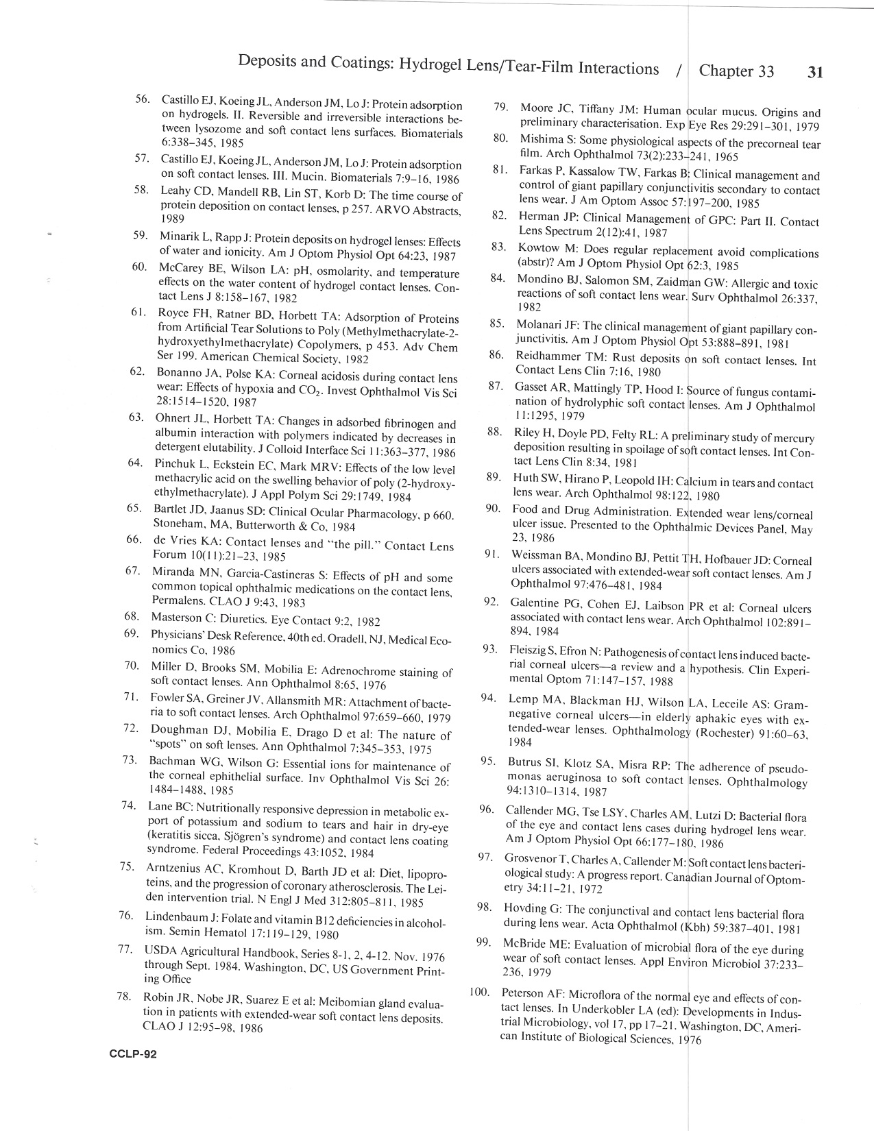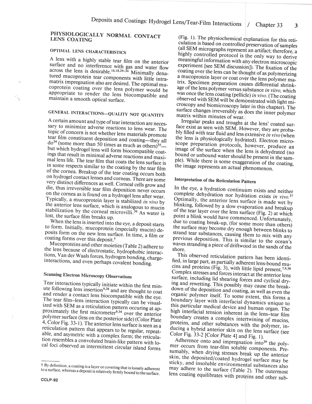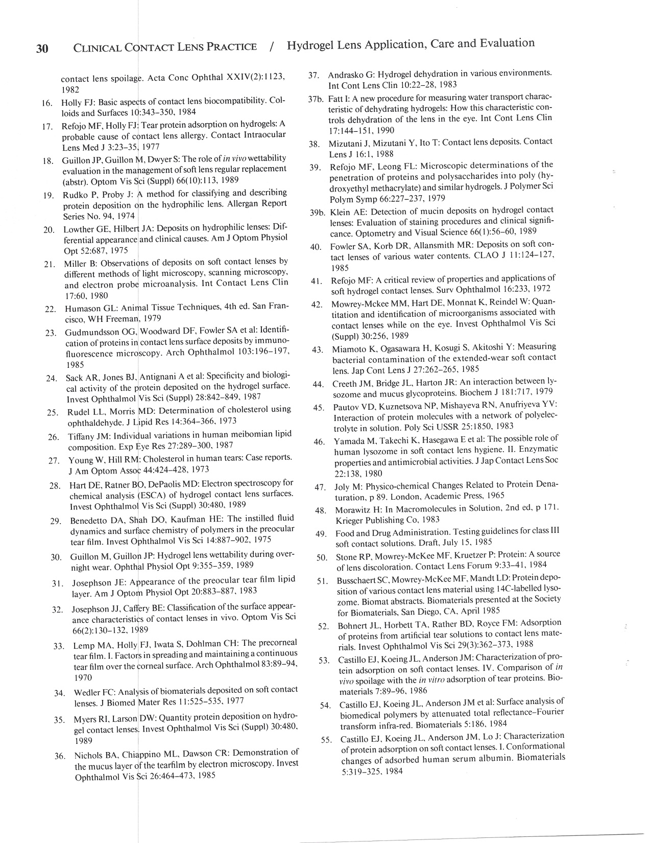 Clinical Contact Lens Practice, Chapter 33, Deposits Coatings: Hydrogel Lens/ Tear-Film Interactions